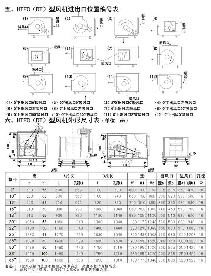 4、 HTFC(DT)系列低噪聲消防通風(兩用)柜式離心風機分為A型和B型兩種類型,A型電機裝在箱體外,用于消防排煙;B型電機裝在箱體內(nèi),用于通風換氣。