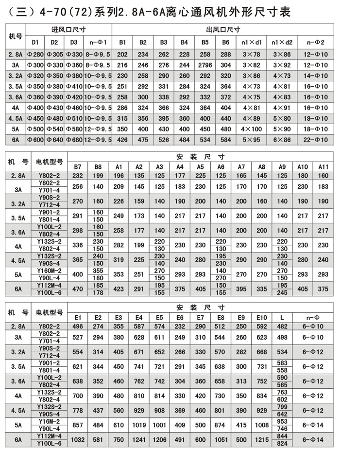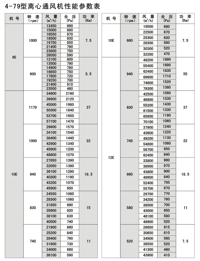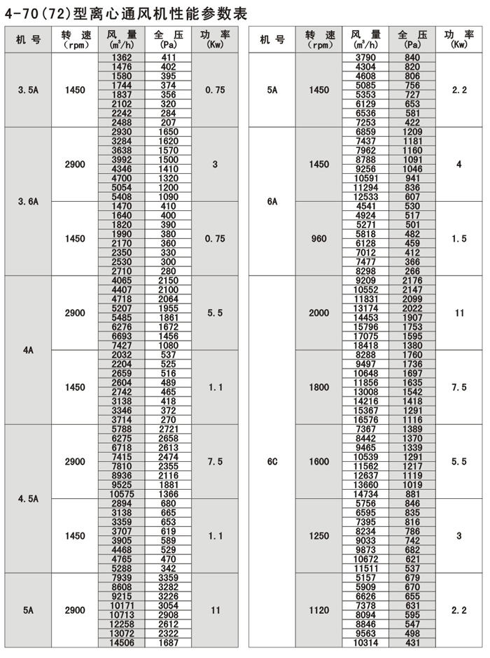 注:F4-72/79為防腐型離心風機,用于輸送有腐蝕性的氣體,用玻璃鋼為制作材料。