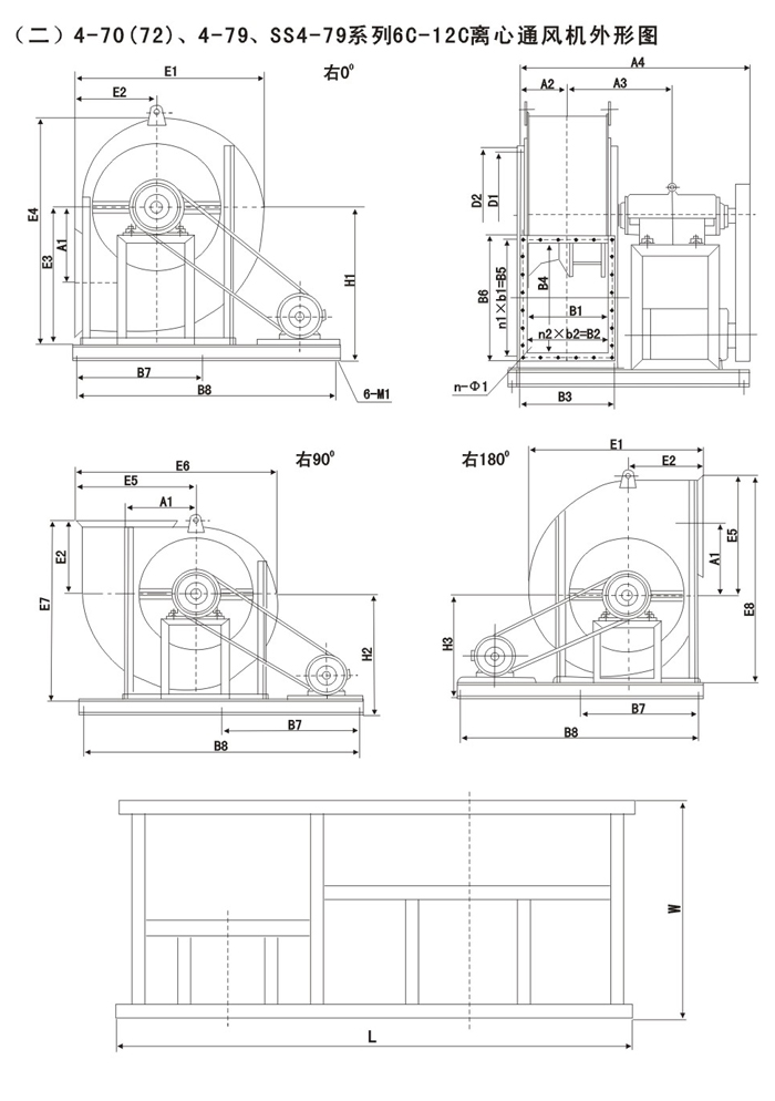 4-72,4-79,SS4機-79系列離心風機作一般通風換氣用,輸送空氣或其它不易燃易爆,無腐蝕性的氣體,氣體內(nèi)無粘性物質(zhì),所含的塵土及硬質(zhì)顆粒物不大于150mg/m3,溫度不超過80攝氏度。