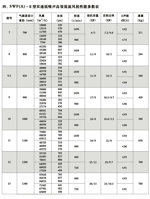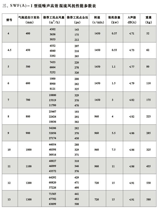 SWF(A)【HLF】系列低噪聲混流式通風(fēng)機