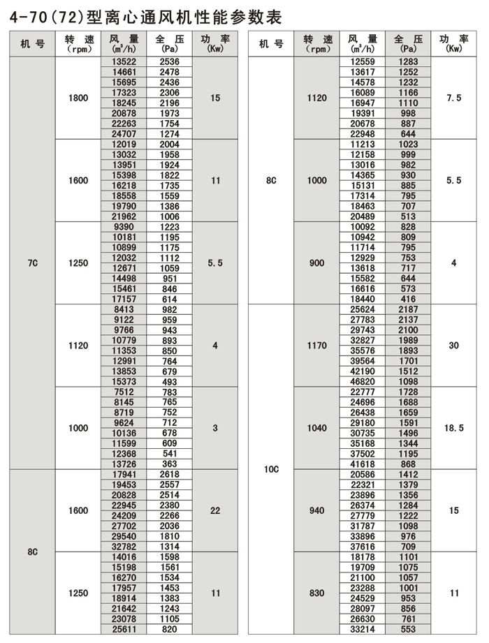 注:F4-72/79為防腐型離心風機,用于輸送有腐蝕性的氣體,用玻璃鋼為制作材料。