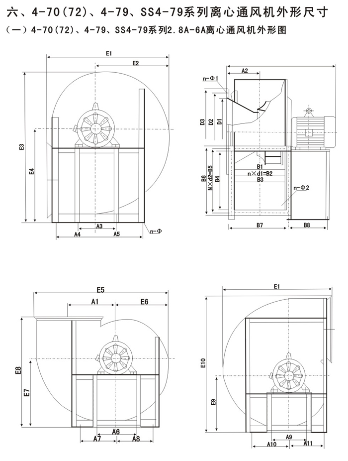 4-72,4-79,SS4機-79系列離心風機作一般通風換氣用,輸送空氣或其它不易燃易爆,無腐蝕性的氣體,氣體內(nèi)無粘性物質(zhì),所含的塵土及硬質(zhì)顆粒物不大于150mg/m3,溫度不超過80攝氏度。